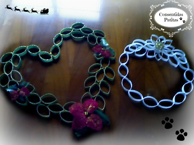 - Consentidas Patitas nos enseña unas coronas de Navidad hechas con tubos de papel higiénico.